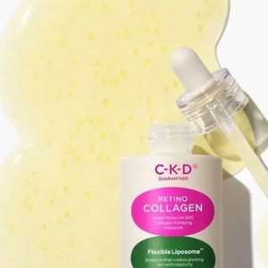 CKD ліфтинг-ампула з ретиналем і колагеном містить 55% низькомолекулярного водорозчинного колагену, який підтримує пружність та еластичність шкіри, а також забезпечує необхідне зволоження. Стабілізований ретиналь сприяє антивіковому ефекту, стимулюючи виробництво природного колагену в глибоких шарах шкіри. Ніацинамід допомагає розгладити дрібні та глибокі вікові лінії, вирівнюючи тон шкіри і висвітлюючи її. Засіб ефективно бореться з пігментними плямами та слідами постакне, підтримує відновлення захисних властивостей шкіри через покращення синтезу керамідів. Запатентована формула Flexible Liposome доставляє активні компоненти до дерми, забезпечуючи їх миттєве поглинання. Гіпоалергенна текстура ампули підходить для всіх типів шкіри, не залишаючи липких слідів.