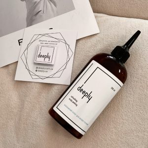 Намочіть волосся і шкіру голови. Рівномірно нанесіть засіб на прикореневу зону. Легко промасажуйте шкіру голови. Залиште пілінг на 3–5 хвилин для активної дії. Ретельно змийте теплою водою. Потім вимийте волосся шампунем Deeply, який відповідає вашому типу шкіри голови. Рекомендується використовувати 3–5 разів на місяць для підтримання здоров’я та чистоти шкіри голови.