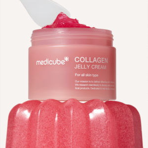 Medicube Collagen Jelly Cream – насичений колагеном желеподібний крем, який миттєво підвищує пружність шкіри, підтягує контур обличчя та розгладжує дрібні зморшки. Після нанесення обличчя виглядає сяючим, здоровим і доглянутим.