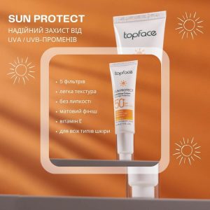 Сонцезахисний крем для обличчя Topface Sun Protect SPF 50+ Anti-Shine Cream, 30 мл