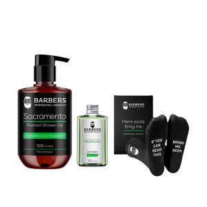Подарунковий набір для чоловіків Sandalwood & Grapefruit Barbers™ — це стильний і практичний сет, створений для справжнього поціновувача догляду та комфорту. У комплект входить тонізуючий гель для душу Sacramento, заспокійливий лосьйон після гоління London, а також яскраві якісні шкарпетки з оригінальним написом. Гель дбайливо очищує шкіру та заряджає енергією, лосьйон швидко знімає подразнення та залишає приємне відчуття зволоження, а шкарпетки додають образу стильного настрою та індивідуальності. Усе це акуратно упаковано в елегантний бавовняний мішечок-органайзер, що робить набір ідеальним подарунком на будь-яку подію.