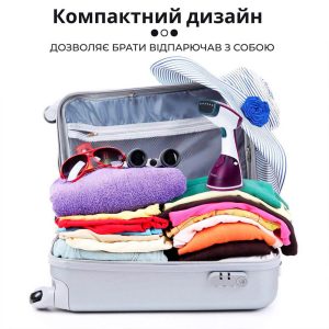 Компактні розміри та мала вага роблять відпарювач зручним для домашнього використання та подорожей. Знімний резервуар для води спрощує експлуатацію та догляд за пристроєм.