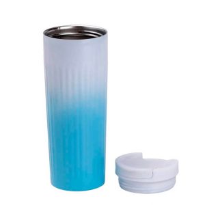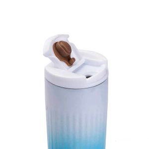 Ця термочашка об’ємом 500 мл — ідеальний супутник для офісу, подорожей, навчання чи просто прогулянок. Її елегантний напівпрозорий корпус з пастельним градієнтом у блакитному кольорі вигідно вирізняється з-поміж інших і підкреслює ваш витончений смак.