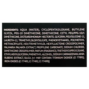 AQUA (WATER), CYCLOPENTASILOXANE, BUTYLENE GLYCOL, PEG-10 DIMETHICONE, DIMETHICONE, CETYL PEG/PPG-10/1 DIMETHICONE, DISTEARDIMONIUM HECTORITE, GLYCERIN, POLYSILICONE-11, LAURETH-12, TRIMETHYLSILOXYSILICATE, PHENOXYETHANOL, POLYMETHYL METHACRYLATE, HDI/TRIMETHYLOL HEXYLLACTONE CROSSPOLYMER, PALMARIA PALMATA EXTRACT, PROPYLENE CARBONATE, SODIUM CHLORIDE, DIMETHICONE CROSSPOLYMER, PARFUM (FRAGRANCE), TRIETHOXYCAPRYLYLSILANE, ETHYLHEXYLGLYCERIN, PHENETHYL ALCOHOL, SODIUM CARRAGEENAN, JANIA RUBENS EXTRACT, SILICA.