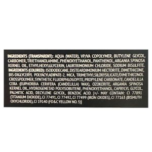 ISODODECANE, DISTEARDIMONIUM HECTORITE, DIMETHICONE, BIS-DIGLYCERYL POLYACYLADIPATE-2, MICA, TRIMETHYLSILOXYSILICATE/DIMETHICONOL CROSSPOLYMER, SYNTHETIC FLUORPHLOGOPITE, PROPYLENE CARBONATE, EUPHORBIA CERIFERA CERA, OZOKERITE, ARGANIA SPINOSA OIL, HYDROGENATED POLYISOBUTENE, PHENOXYETHANOL, CAPRYLYL GLYCOL, PALMITIC ACID, DECYLENE GLYCOL, BENZOIC ACID, [+/- MAY CONTAIN: CI 77891, CI 77491, CI 77492, CI 77499, CI 77163, CI 19140]